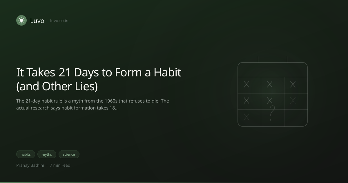 The 21-day rule has been repeated so often it feels like settled science — the kind of fact you'd expect to find in a textbook between chapters on photosynthesis and the French Revolution. But it's not science. It's a misquotation from a plastic surgeon in 1960. And the actual research on habit formation tells a story that's messier, longer, and, honestly, way more forgiving than any motivational reel would have you believe.