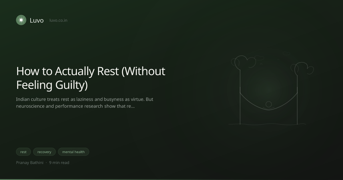 Because for most of us, especially those raised in Indian households, rest triggers guilt before it triggers recovery. You sit down to read a novel and a voice in your head says you should be doing something useful. You take a Sunday afternoon nap and wake up feeling like you've stolen something. You take a full day off and spend half of it anxious about Monday. The body is resting but the mind is prosecuting you for it.