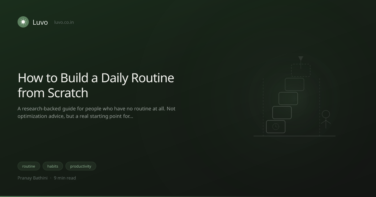 This isn't about laziness. It's about structurelessness — the particular kind of drift that happens when nothing in your day has a fixed anchor. If you search for "how to build a routine," most advice assumes you already have one and want to optimize it. Wake up at 5 AM. Cold showers. Gratitude journals. That advice is useless if your starting point is zero.