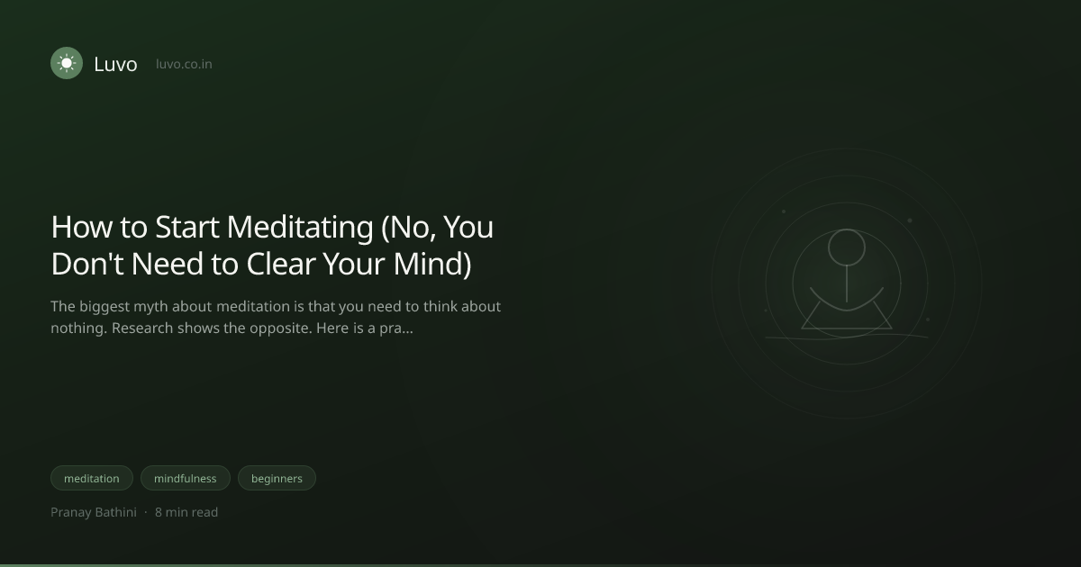 Inconsistency. Five minutes every day beats thirty minutes once a week. Every single time. (And no, missing a day won't ruin your progress.) The benefits build through regularity, not intensity. Attach meditation to something you already do, right after your morning chai, right before bed, and it's far more likely to stick. If you're using something like Luvo to build daily rituals, the Explore library has a Morning Meditation template with guided steps and a built-in timer — you start it, follow the steps, and write a brief reflection when you're done. It takes the "what do I do?" question off the table entirely.