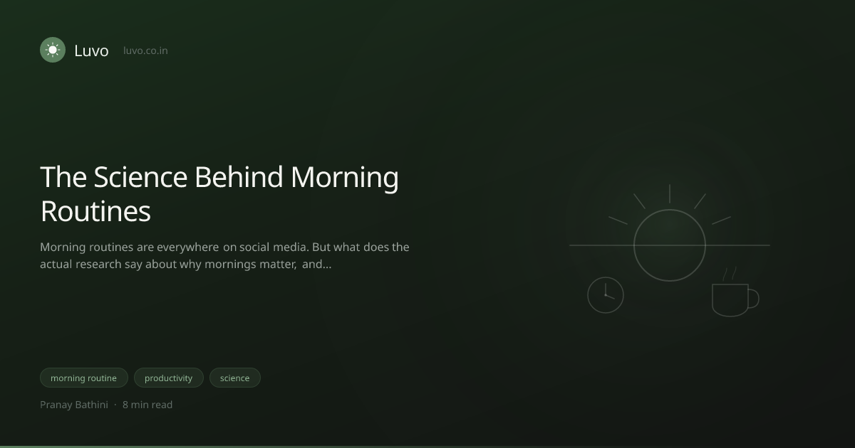 Morning routines aren't magic. They're applied behavioural science: consistent cues, reduced friction, preserved cognitive resources, biological rhythms working in your favour. The research supports them, with meaningful caveats about individual variation and chronotype.