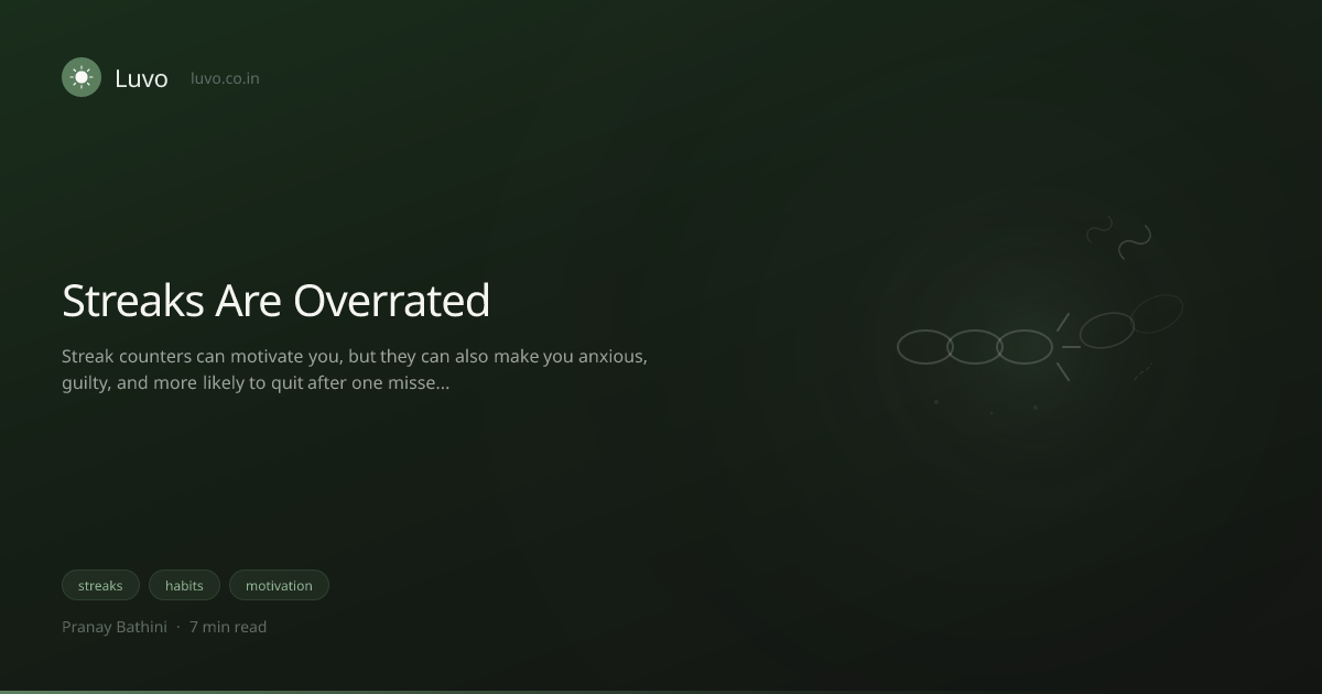 This is a big part of why we built Luvo the way we did. Luvo tracks your progress and shows you patterns over time, but it doesn't slap a streak counter on your home screen or send panicked notifications at 11 PM. We'd rather you build something sustainable than something that looks impressive for three months and then collapses the moment life gets in the way.